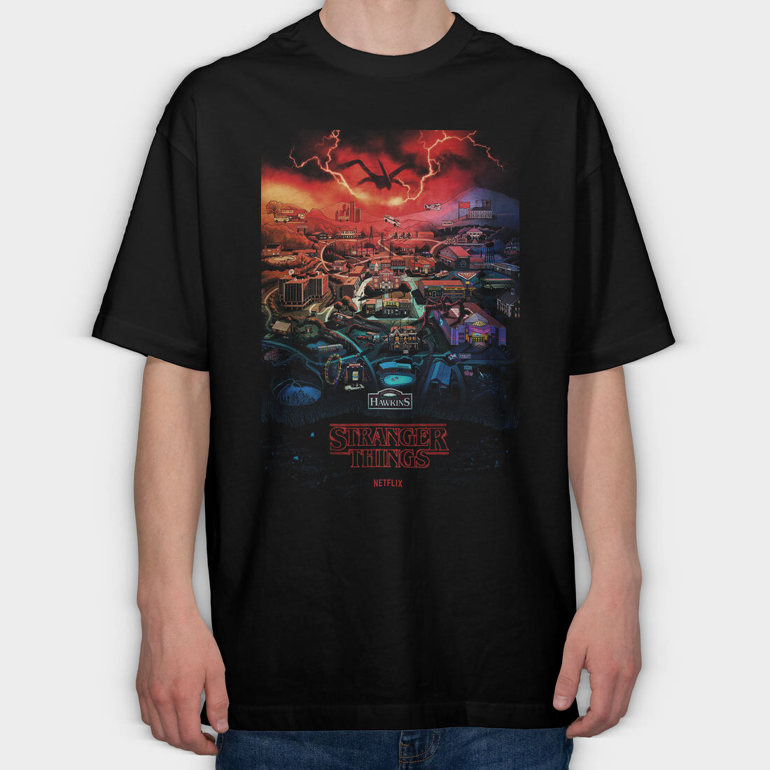 Stranger Things Hawkins, Tricou Oversize Barbati (Unisex)