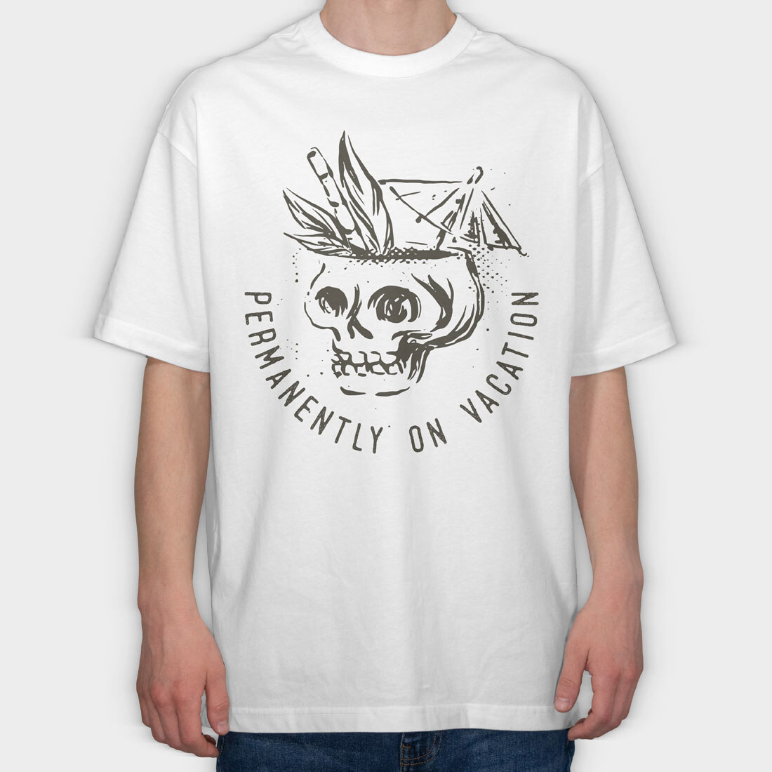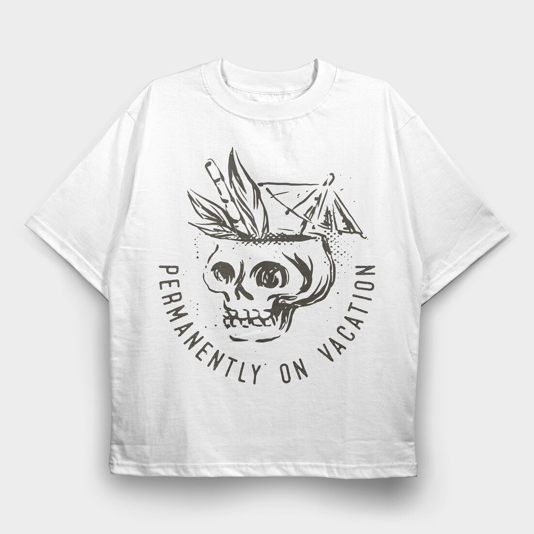 Summer Vacation Skull, Tricou Oversize Barbati (Unisex)