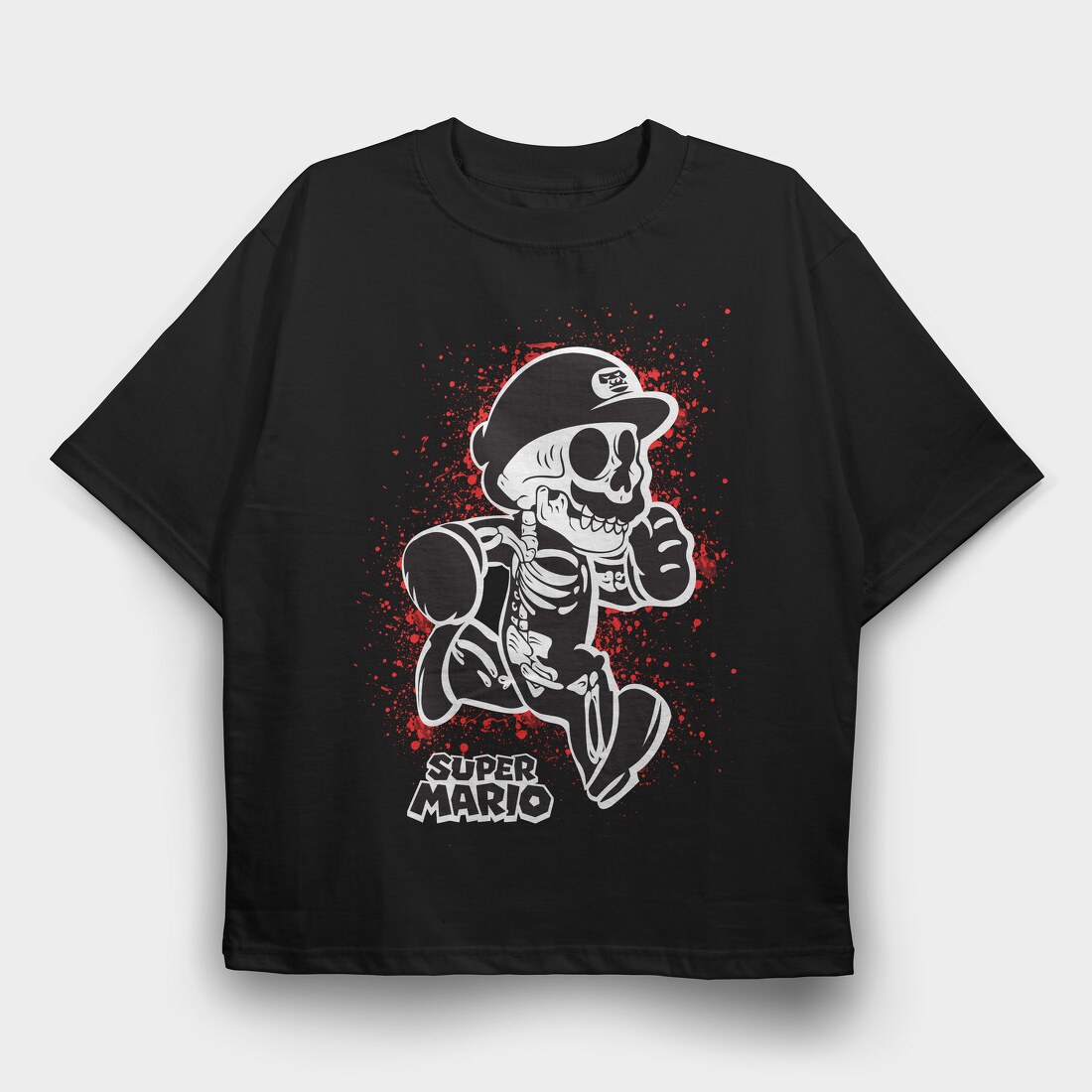 Super Mario Skeleton Blood Splatter, Tricou Oversize Barbati (Unisex)