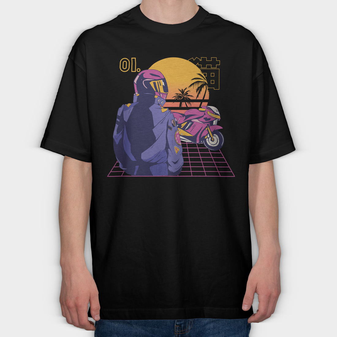 Synthwave Motorcyclist, Tricou Oversize Barbati (Unisex)