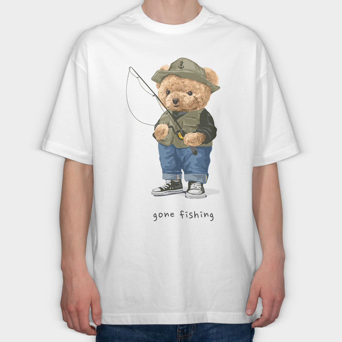 Teddy Bear Fishing, Tricou Oversize Barbati (Unisex)