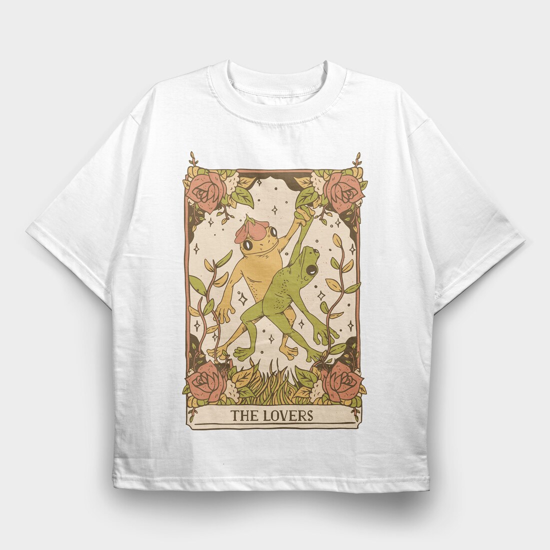 The Lovers Frog Tarot Card, Tricou Oversize Barbati (Unisex)