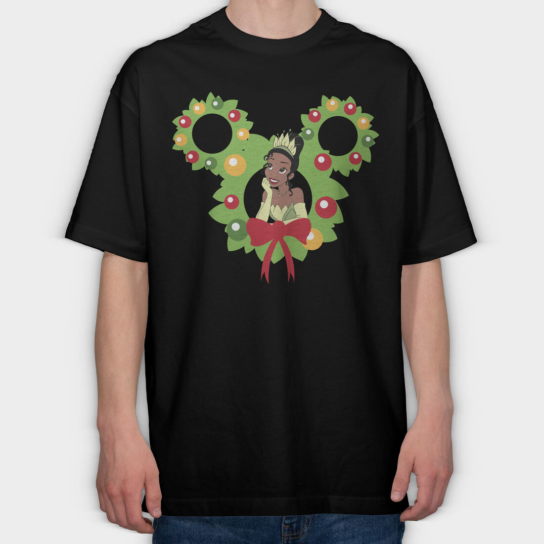 Tiana Holiday Wreath, Tricou Oversize Barbati (Unisex)