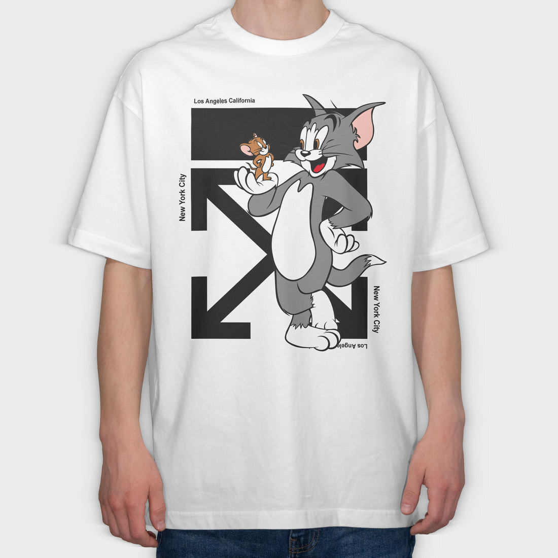 Tom And Jerry City Trip Los Angeles New York, Tricou Oversize Barbati (Unisex)