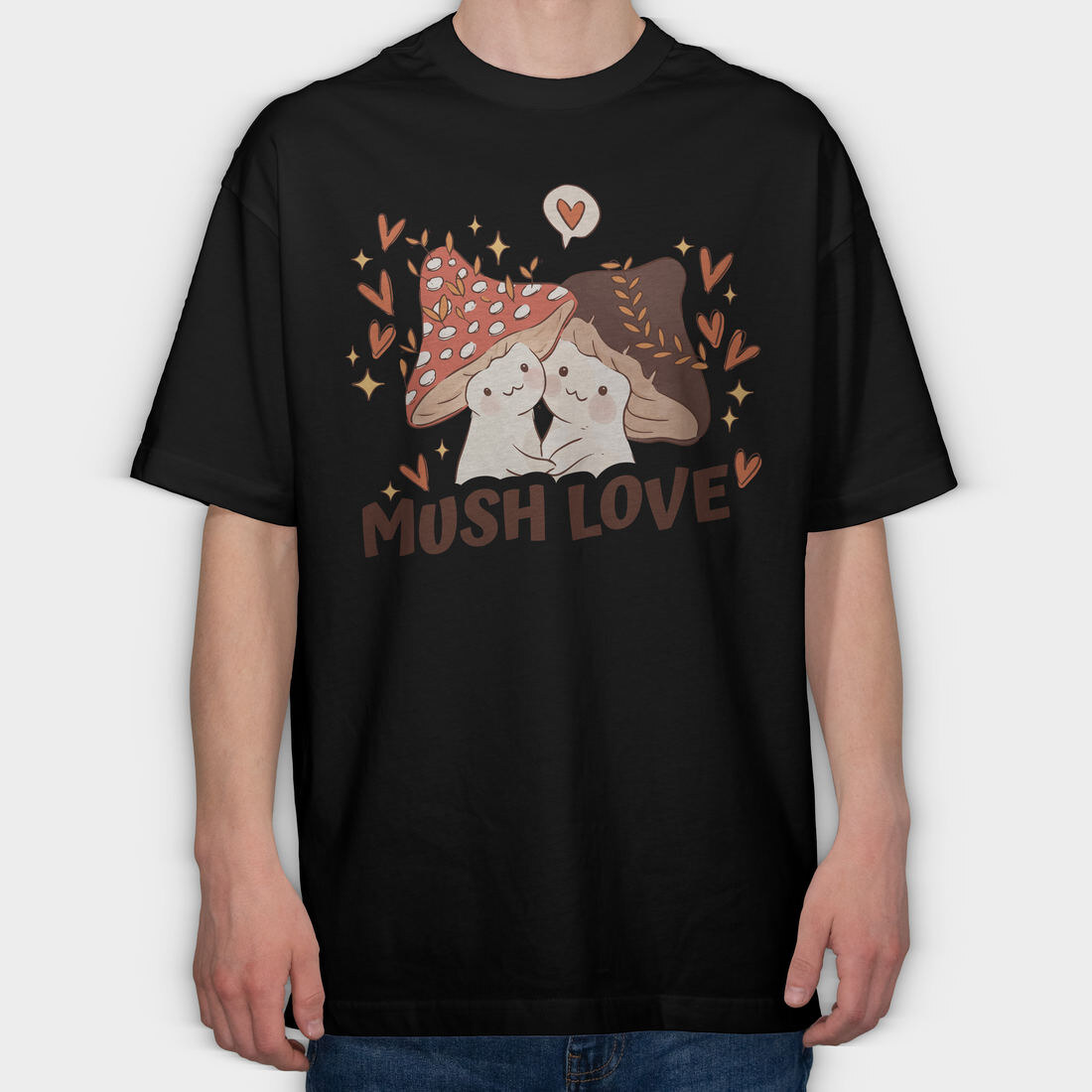 Two Kawaii Mushrooms With The Words Mush Love, Tricou Oversize Barbati (Unisex)