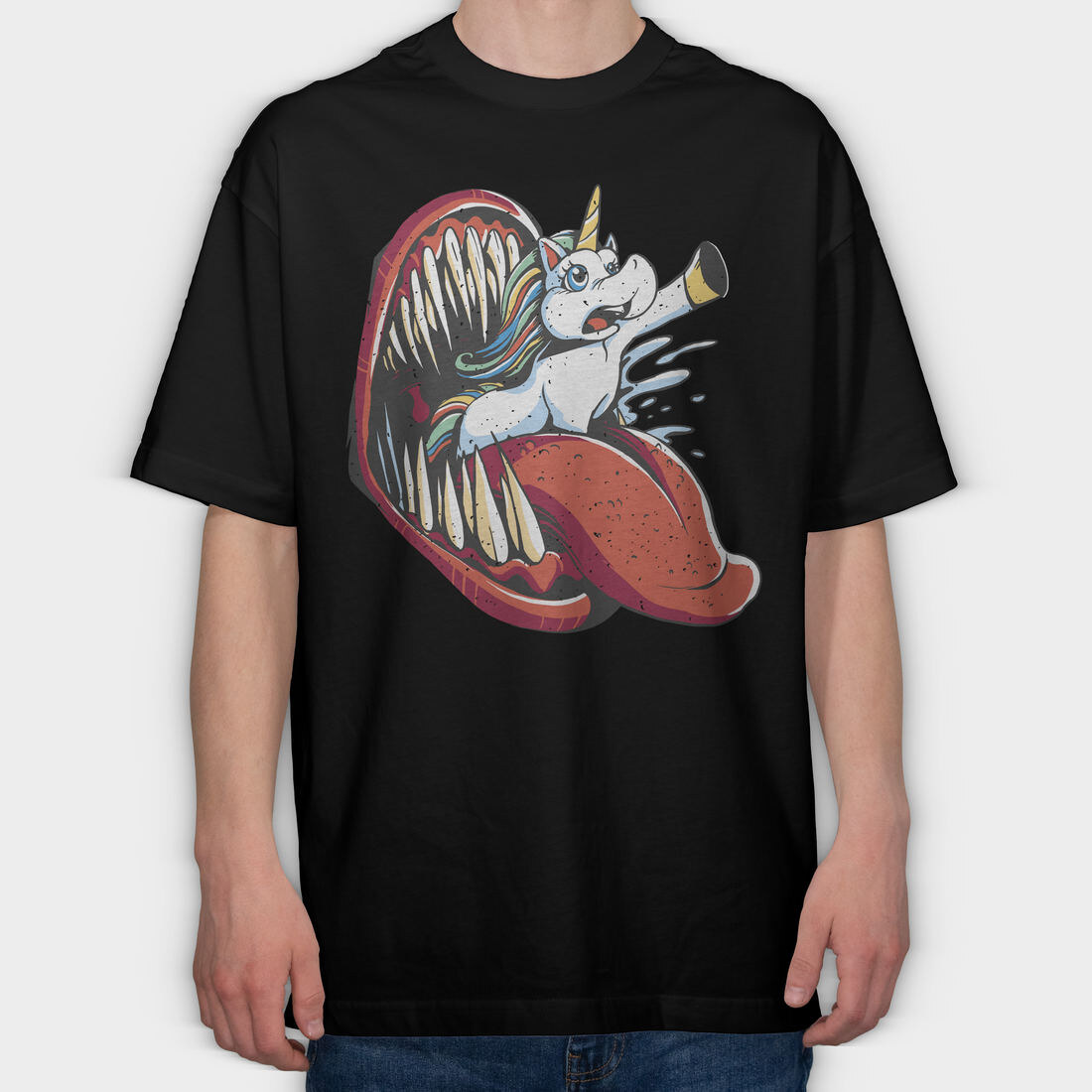 Unicorn And Monster Mouth Eaten, Tricou Oversize Barbati (Unisex)