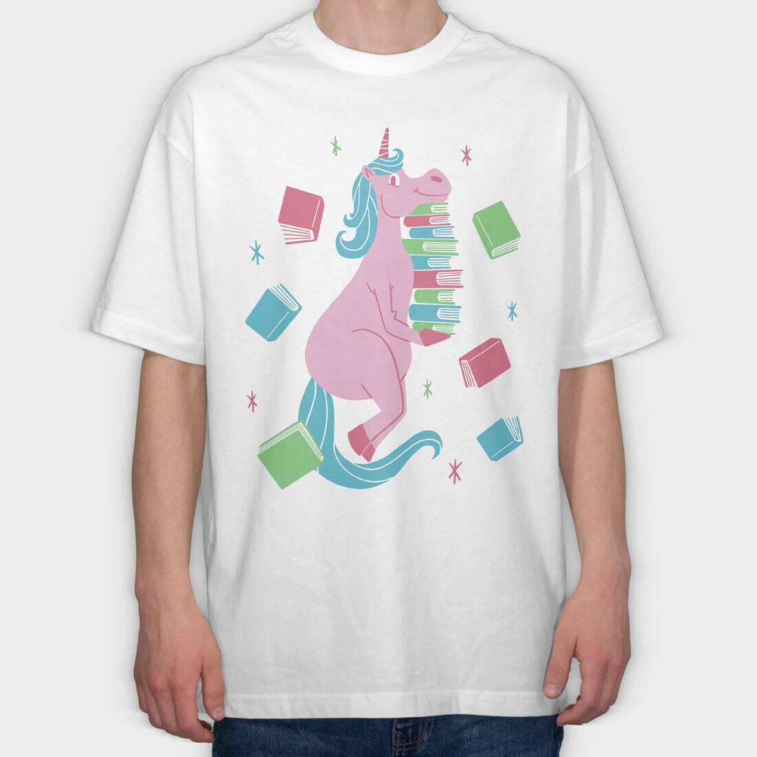 Unicorn Book Lover, Tricou Oversize Barbati (Unisex)