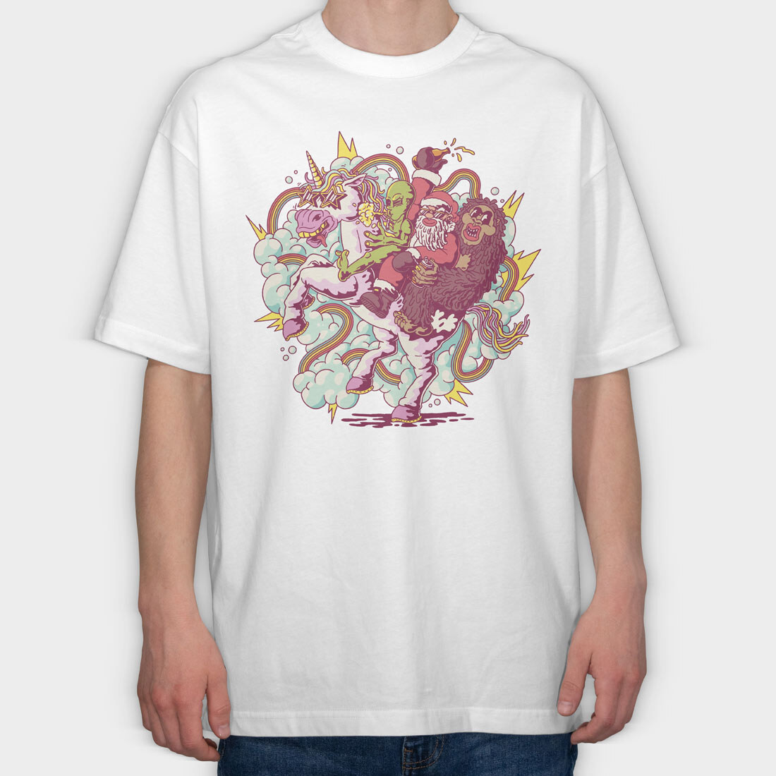 Unicorn Santa Aliens Sasquatch, Tricou Oversize Barbati (Unisex)