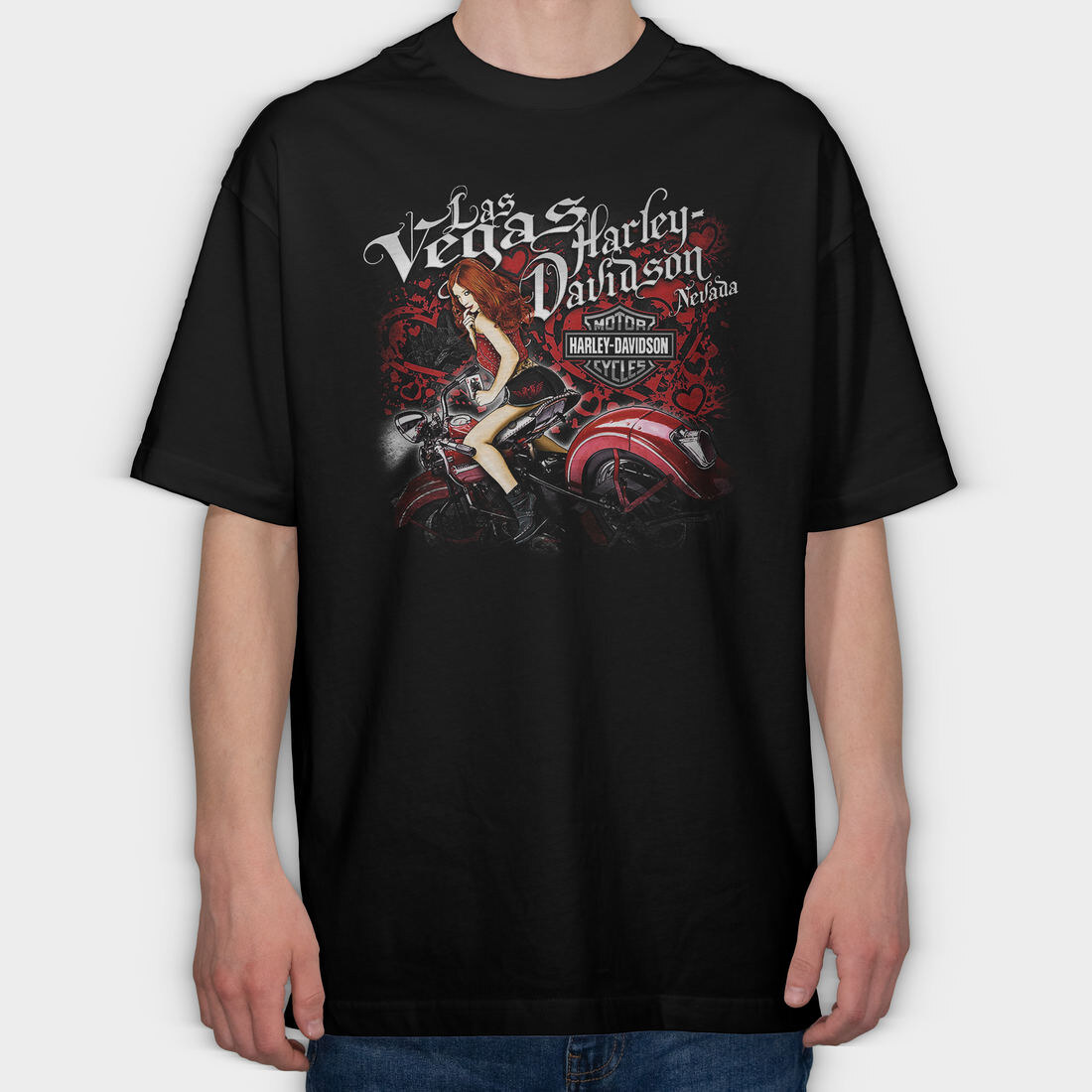 Vegas Harley Biker Girl Ride, Tricou Oversize Barbati (Unisex)