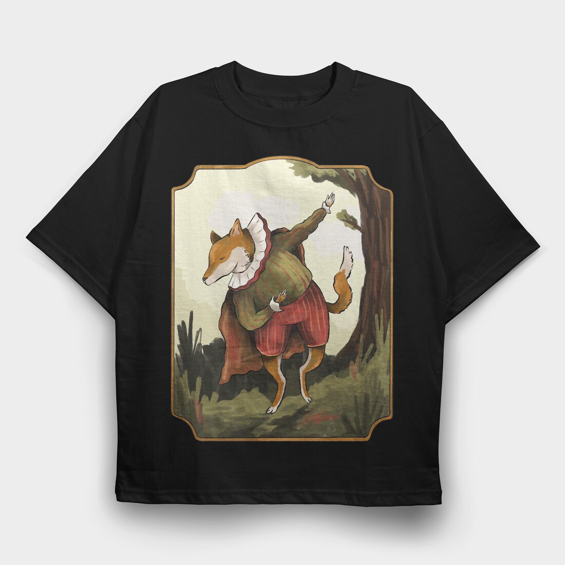 Vintage Fox Coat Illustrations, Tricou Oversize Barbati (Unisex)