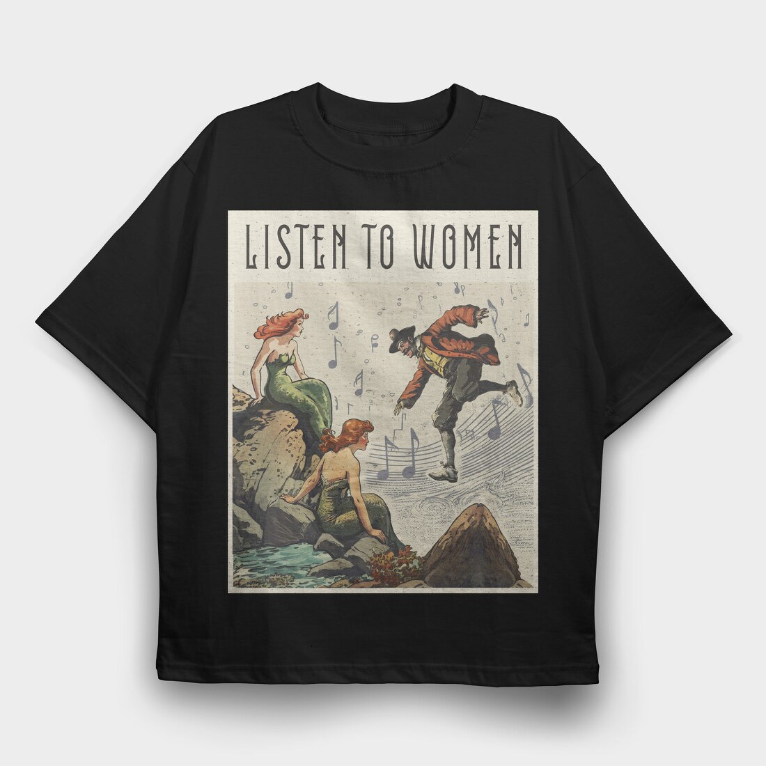Vintage Mermaids And Pirate, Tricou Oversize Barbati (Unisex)