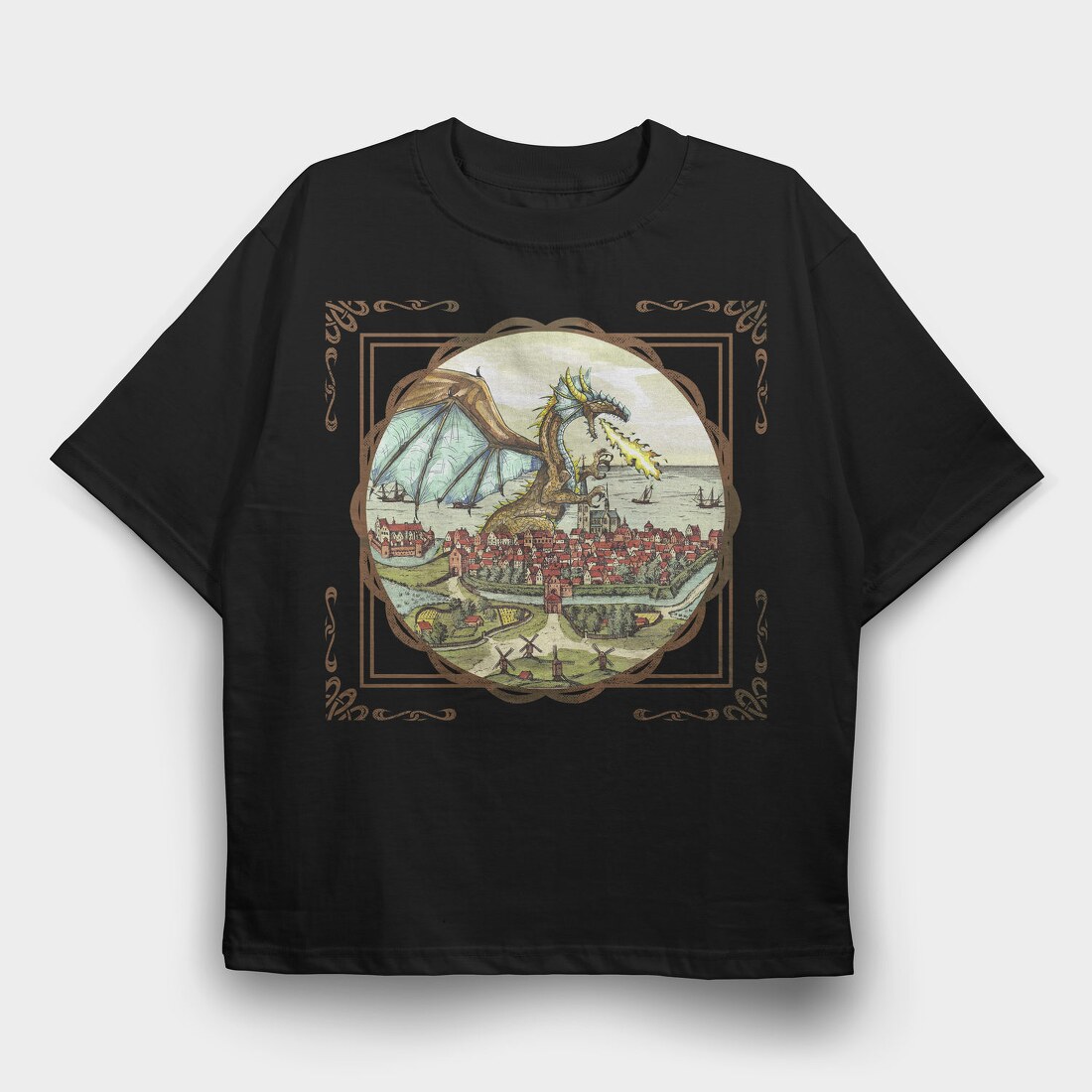 Vintage Painting Dragon Tote, Tricou Oversize Barbati (Unisex)