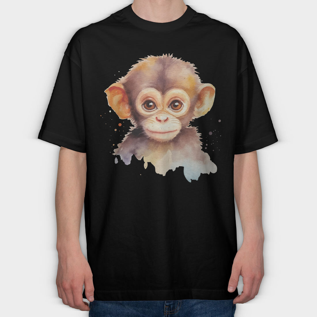 Watercolor Baby Monkey Mug, Tricou Oversize Barbati (Unisex)