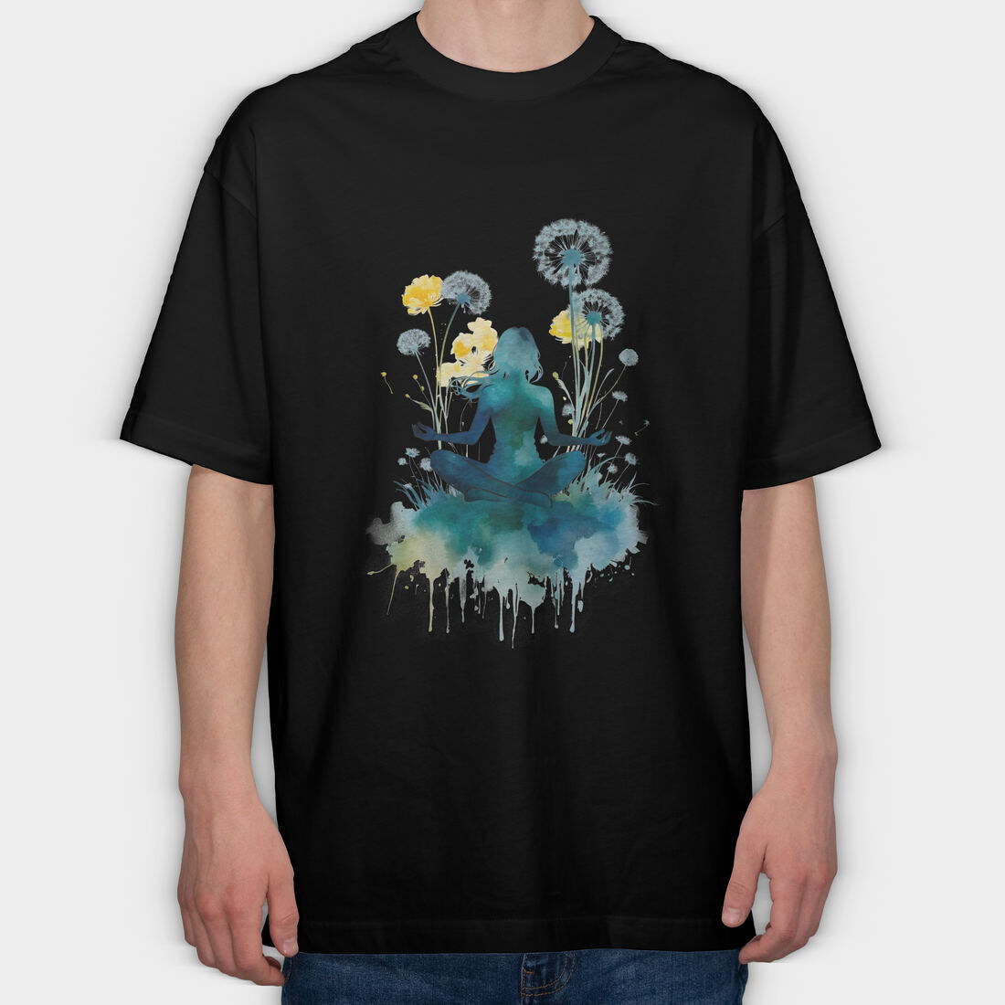 Watercolor Yoga And Meditation Dandelion, Tricou Oversize Barbati (Unisex)
