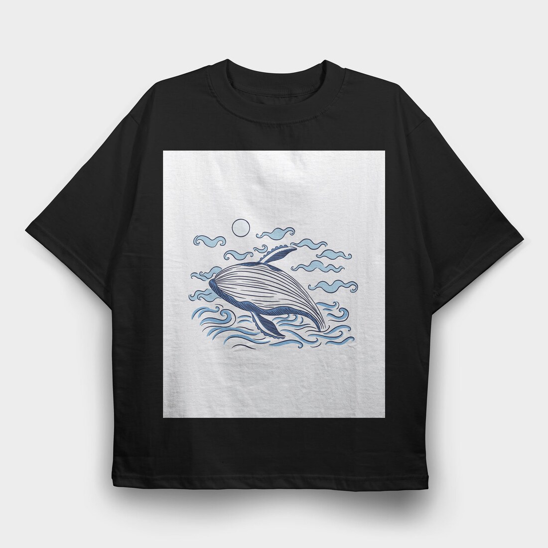 Whale Ocean Illustration, Tricou Oversize Barbati (Unisex)