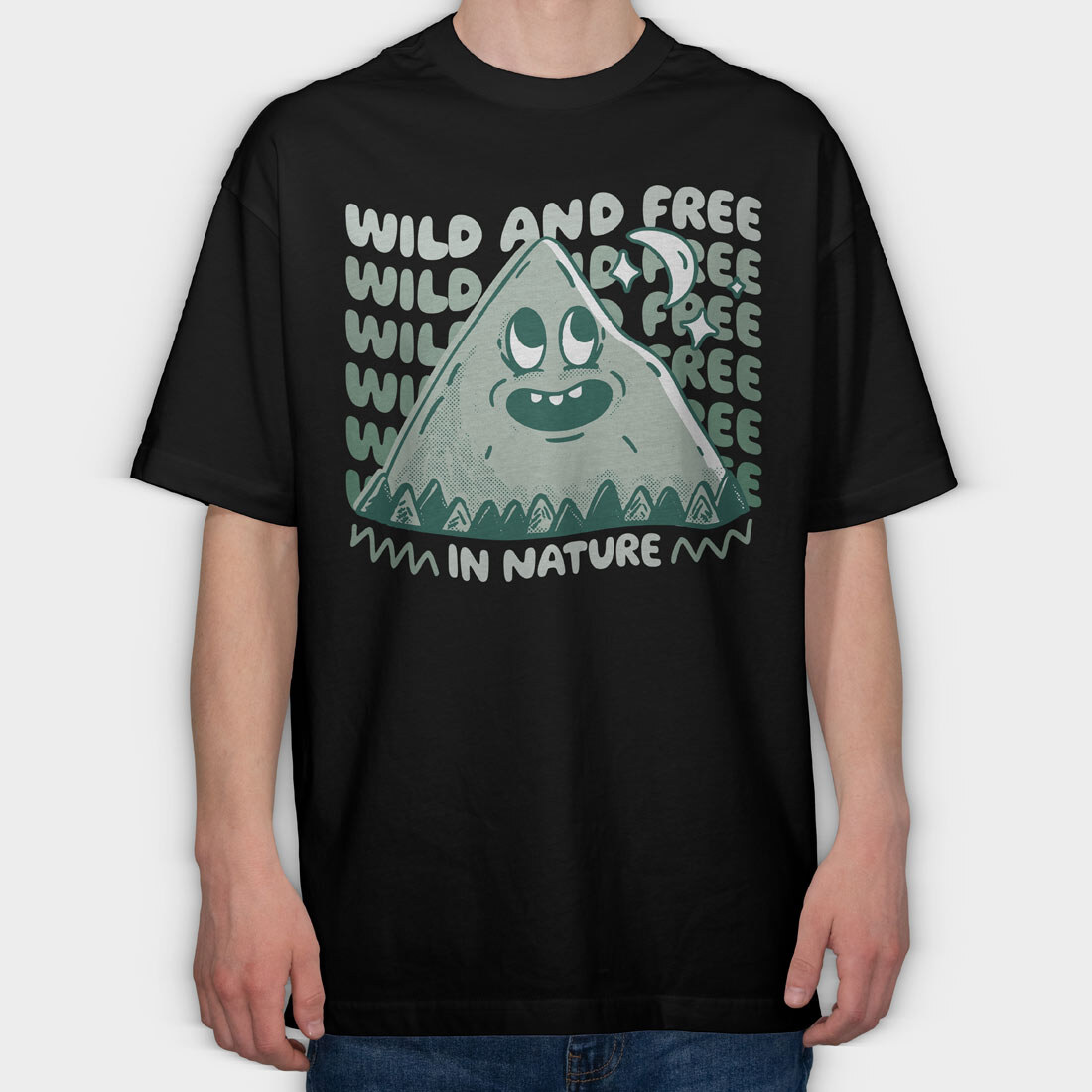 Wild and Free Mountain Cartoon, Tricou Oversize Barbati (Unisex)
