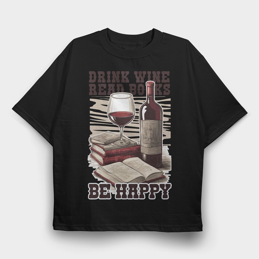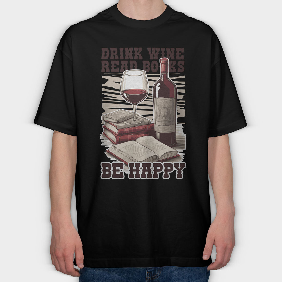 Wine And Books Happy Happiness, Tricou Oversize Barbati (Unisex)