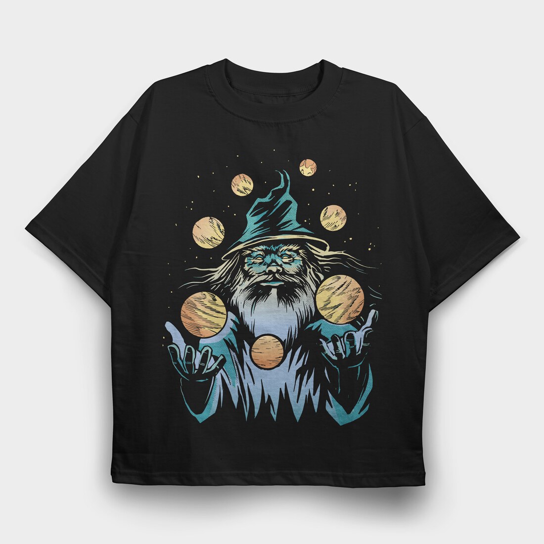 Wizard Juggling Planets, Tricou Oversize Barbati (Unisex)
