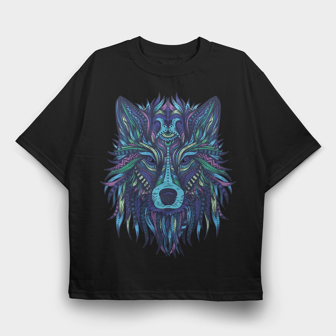 Wolf Illustration Color 001, Tricou Oversize Barbati (Unisex)