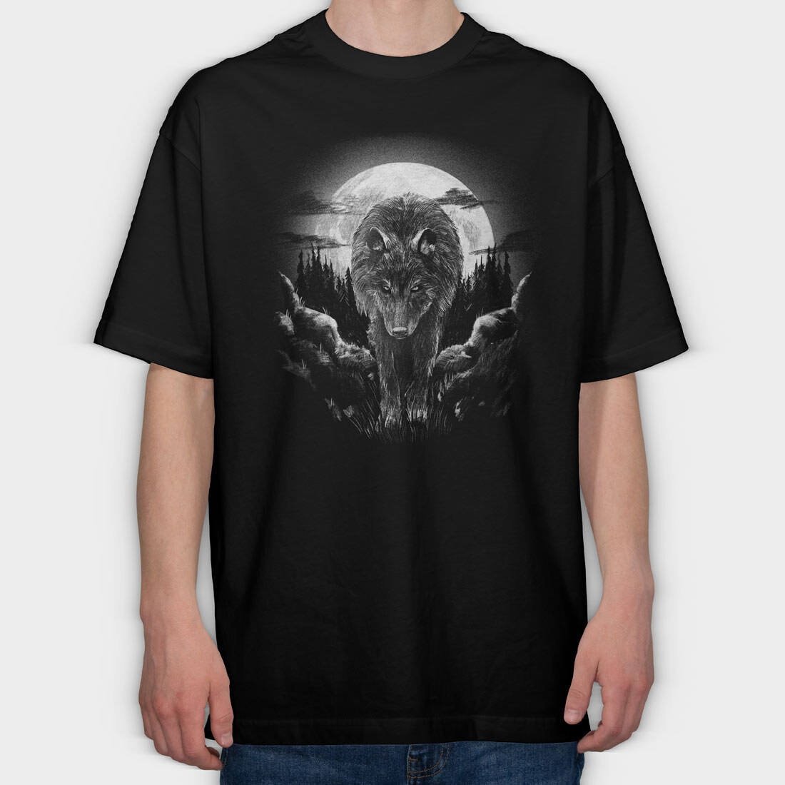 Wolf Woods Moon, Tricou Oversize Barbati (Unisex)