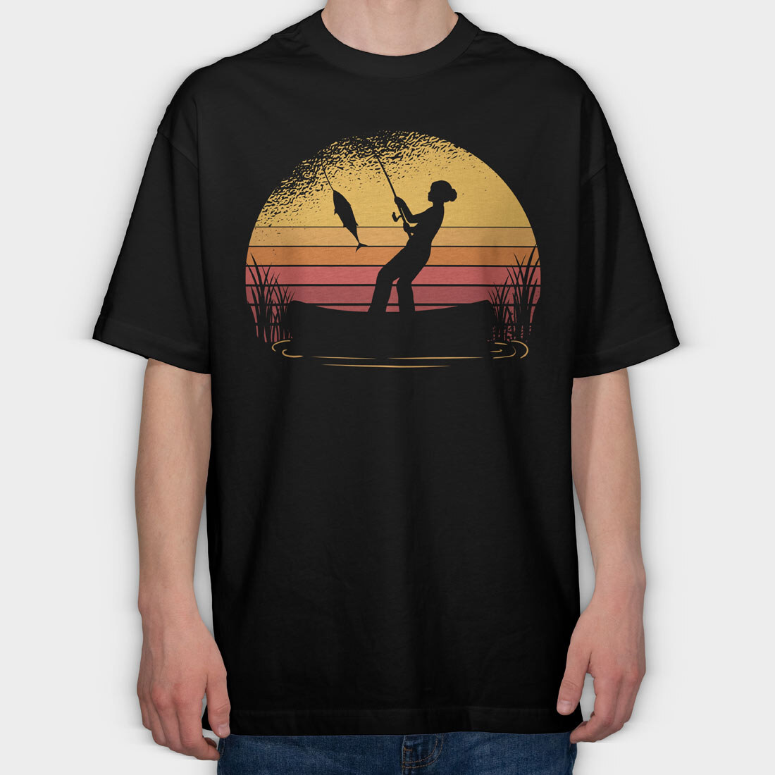 Woman Fishing Sunset, Tricou Oversize Barbati (Unisex)