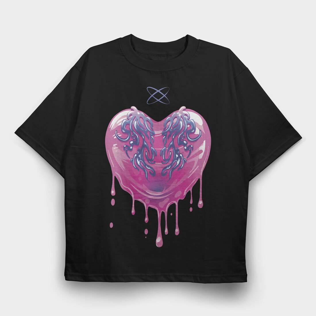 Y3K Dripping Heart Melt, Tricou Oversize Barbati (Unisex)