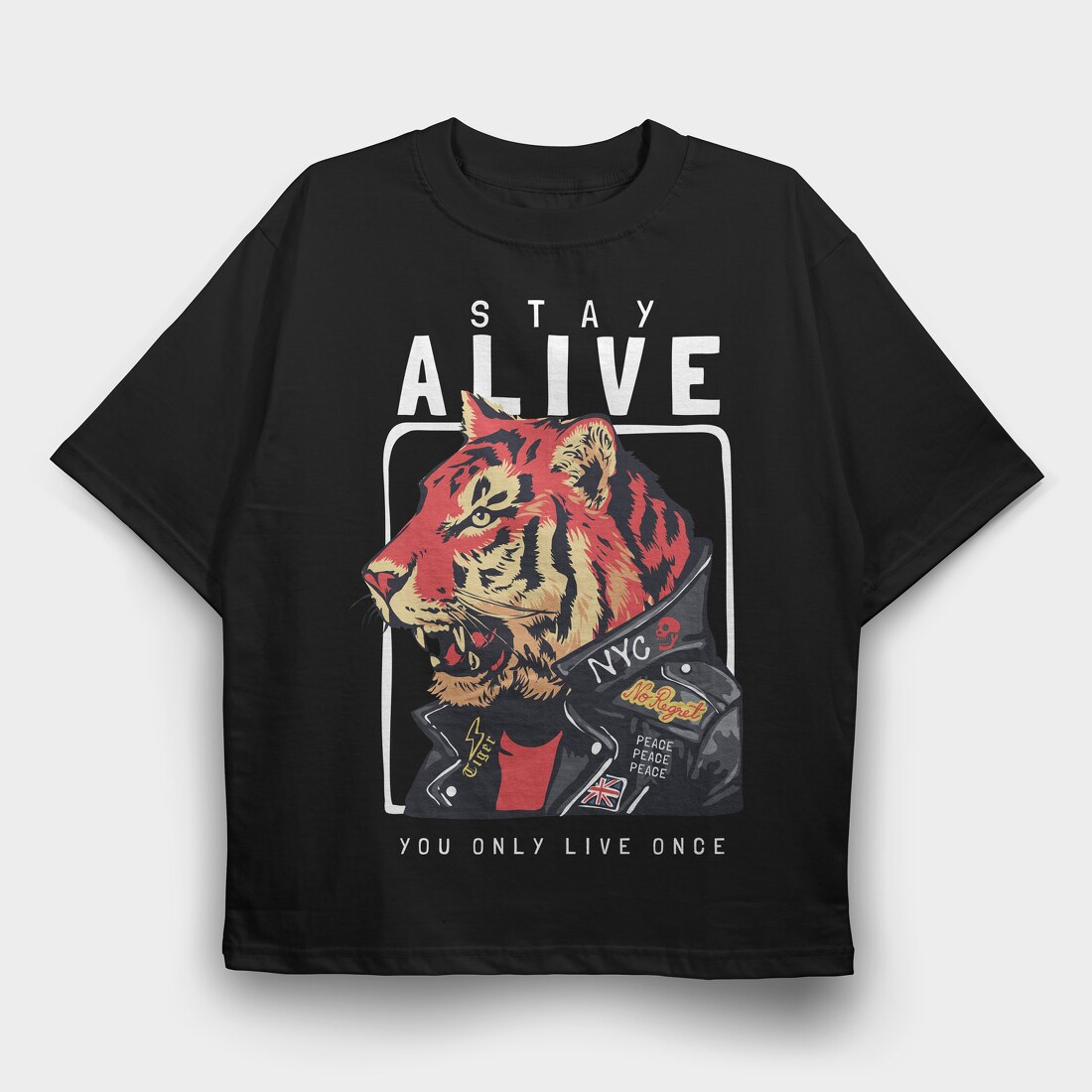 You Only Live Once Tiger, Tricou Oversize Barbati (Unisex)